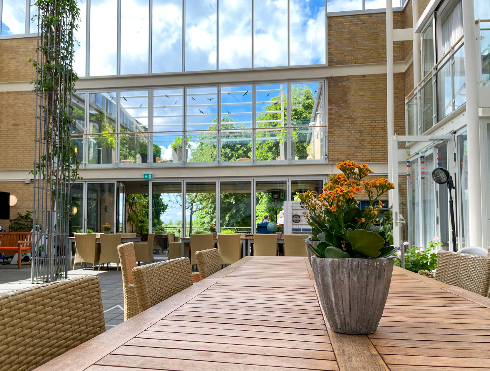 Salem er placeret i det naturskønne område omkring Gentofte sø. Vores fine atriumgård og terrasser har en dejligt udsigt over søen og livet i parken